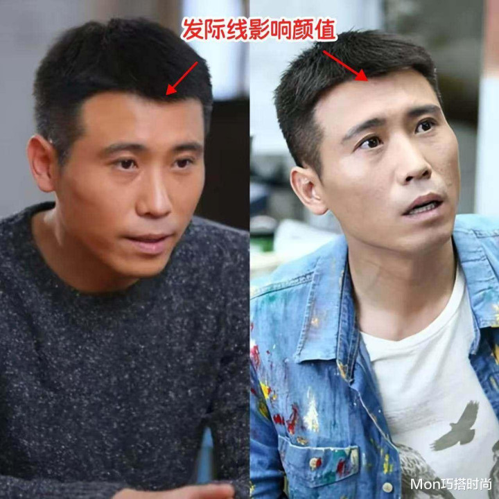 重点①:寸头暴露发际线,拉低颜值