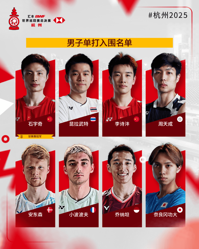 世界羽联年终总决赛入围名单出炉, 石宇奇领衔国羽四项满额
