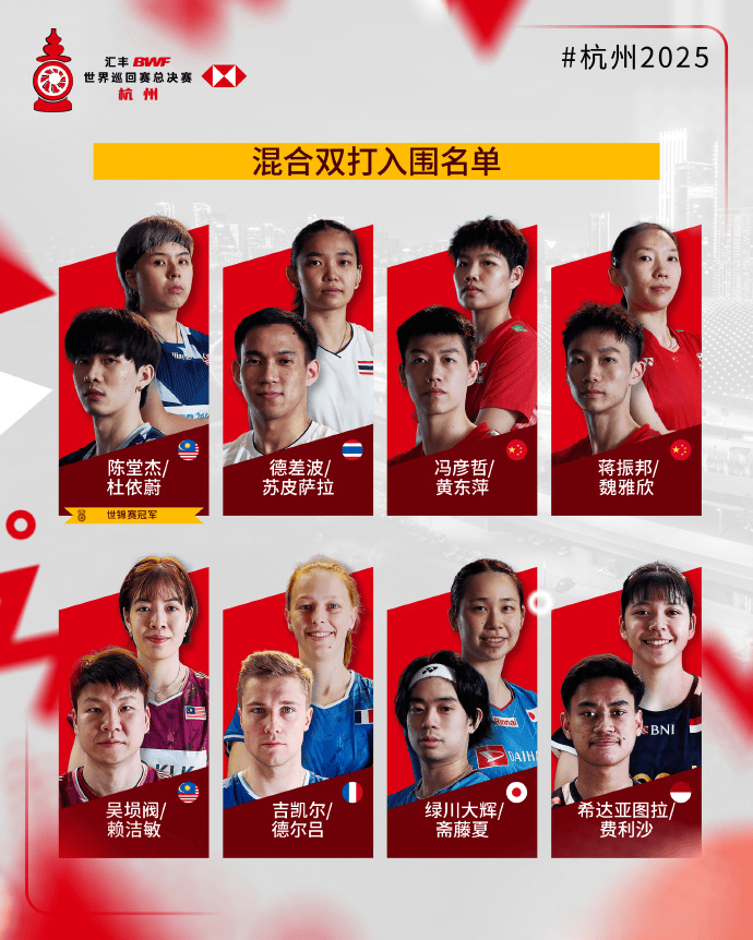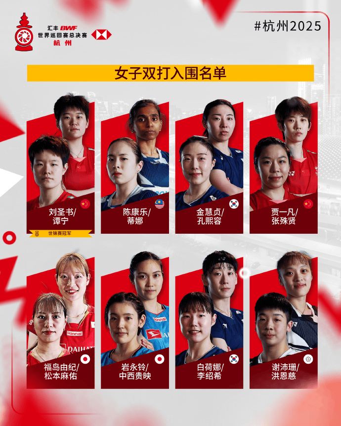 虎扑11月25日讯世界羽联公布年终总决赛入围名单。国羽在男女单、女双和混双四个单项中均满额入围,男双仅梁伟铿/王昶入围。