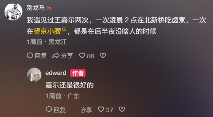 也有网友自曝,王嘉尔曾在凌晨两点出没在北京北新桥的卤煮店,吃望京小腰。