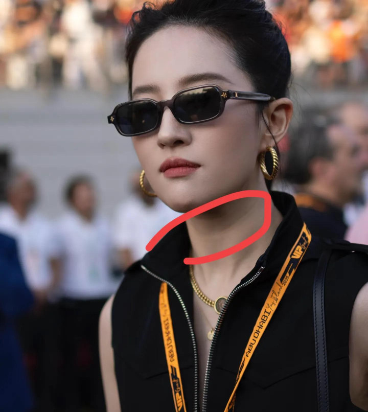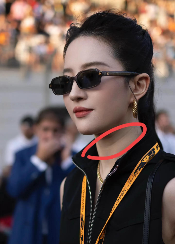 刘亦菲现身F1赛场, 颜值依然惊艳, 只是被颈纹和拜拜肉抢了镜