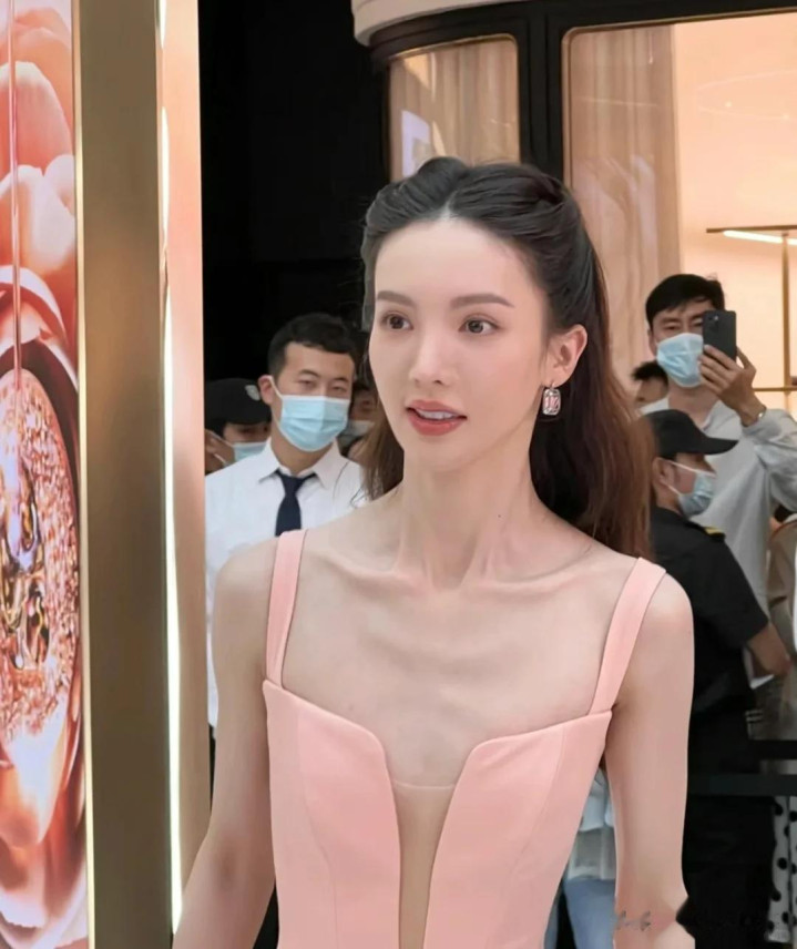 金晨的身材一点料都没有,抹胸最重要的就是衬出性感的身材,可她没有就只能硬挤了。