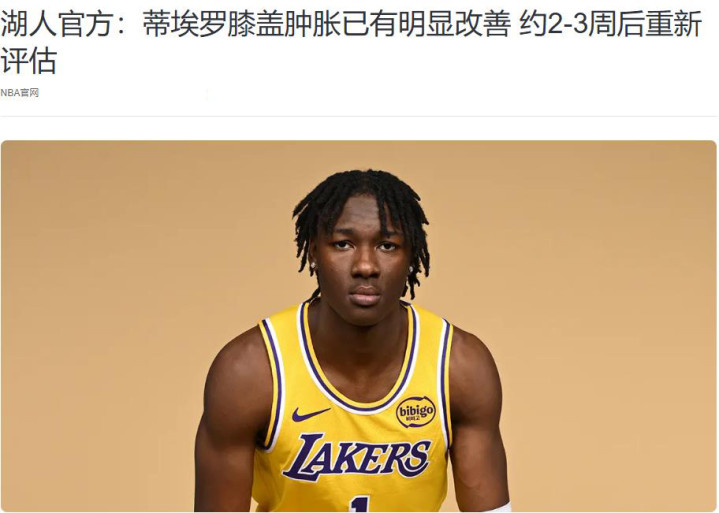 据NBA中国官网报道:蒂耶罗膝盖肿胀已有明显改善,约2-3周后重新评估。