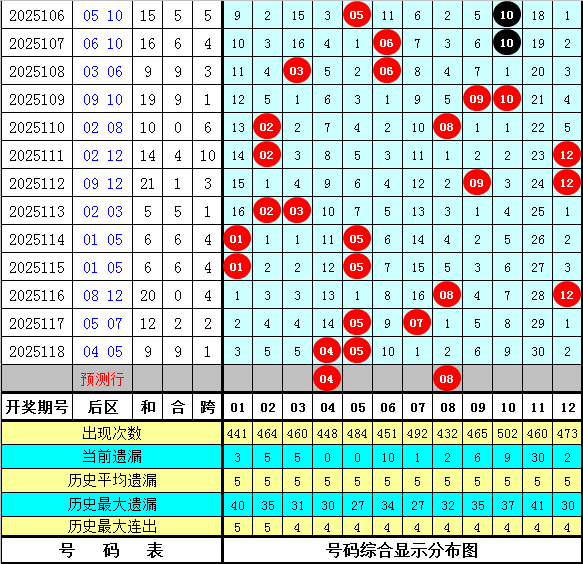 第二区(08-14):最近10周星期一开出了7个奖号,其中号码08出现2次;09、10、11、13、14出现1次;号码12没有出现;