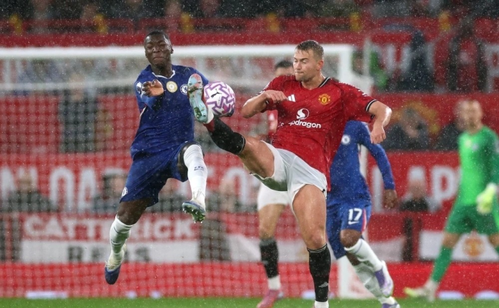 然而足球的残酷在于,优势转瞬即逝。卡塞米罗两黄变一红被罚下场,曼联瞬间从多打一人变为十人应战。下半场在暴雨中演变为一场意志的较量。切尔西由查洛巴扳回一城,士气大振,攻势如潮。曼联防线风雨飘摇,正是在这最危急的时刻,德利赫特挺身而出。