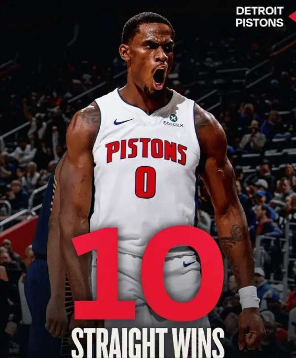 10连胜!10连胜不仅仅是现在联盟最长了连胜,也是自2008年以来,过去17年中的活塞球队最长连胜