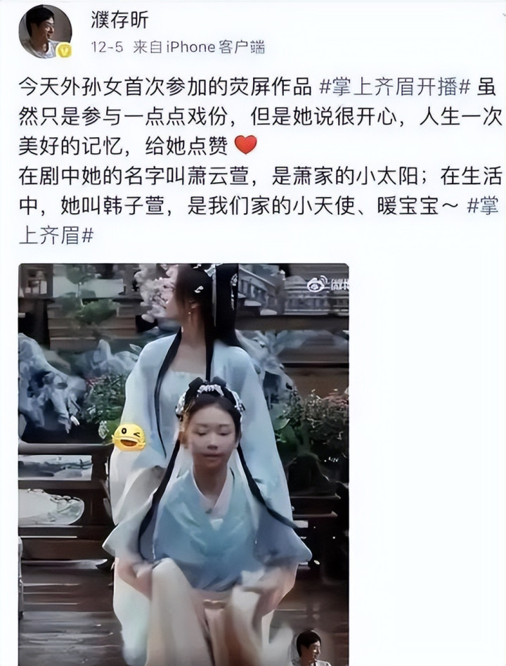 字里行间全是作为外公的骄傲,称外孙女不仅是剧里是 “萧家小太阳”,现实中更是家里的 “暖宝宝”,本来好心给外孙女新剧做个宣传,没想到评论区直接炸了锅,满屏都是 “内娱完了” 的吐槽。
