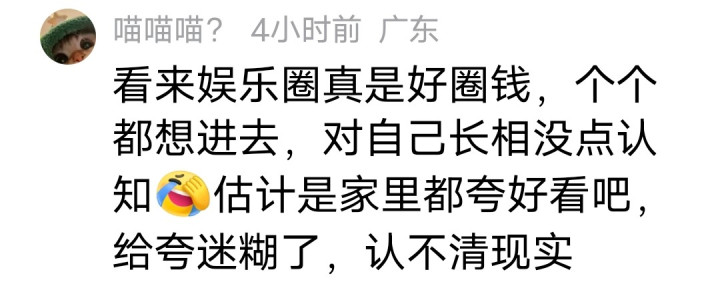 单看长相气质也算可爱,但放在娱乐圈影视剧中可以说是平平无奇了,也难怪网友们说话阴阳怪气了,甚至还有网友说:“又有资本家的丑孩子出道了”,内娱的门槛真是越来越低了。