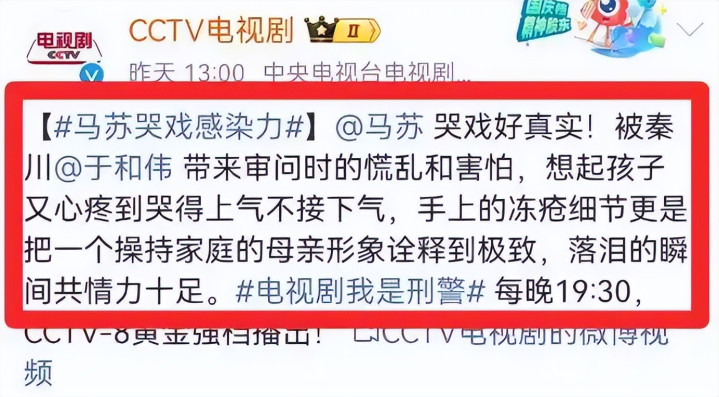 巧的是,马苏在《我是刑警》中饰演的白玲的丈夫,正是此次她被爆恋情的男主角。