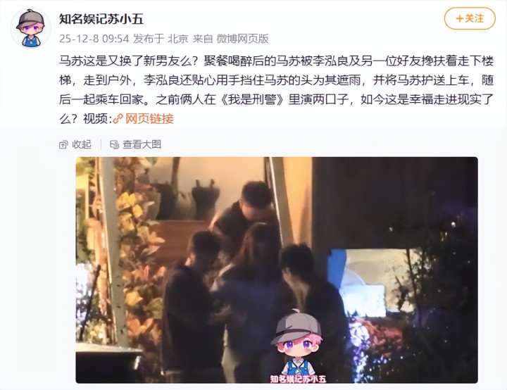 12月8日,一组马苏与一男子相互搀扶的照片被曝光在社交平台,随即便迅速引起了网友们的热议。